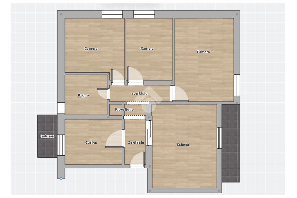 L'immobile è composto da ingresso in corridoio, cucina abitabile, ampio salotto, tre camere da letto, un bagno finestrato e due balconi.