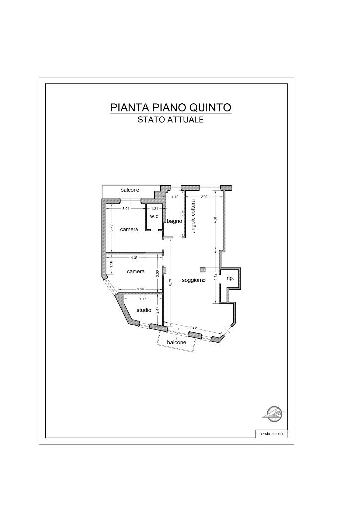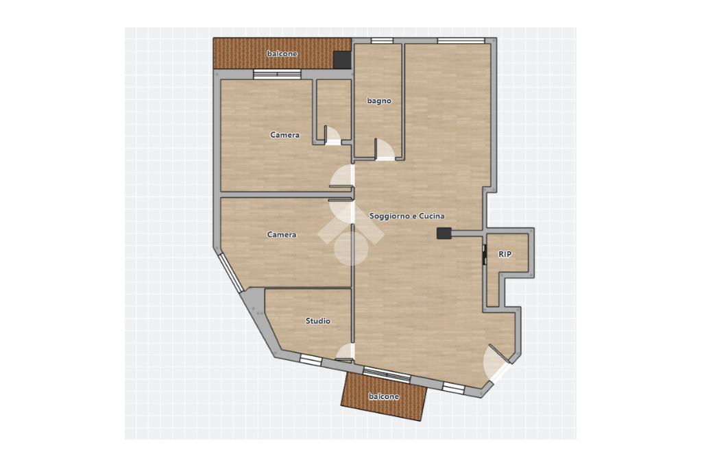 L’appartamento si compone di un ampio ingresso su zona giorno open space, due camere matrimoniali, di cui una con bagno privato, una cameretta adibita a studio, un bagno finestrato con doccia e un comodo ripostiglio.