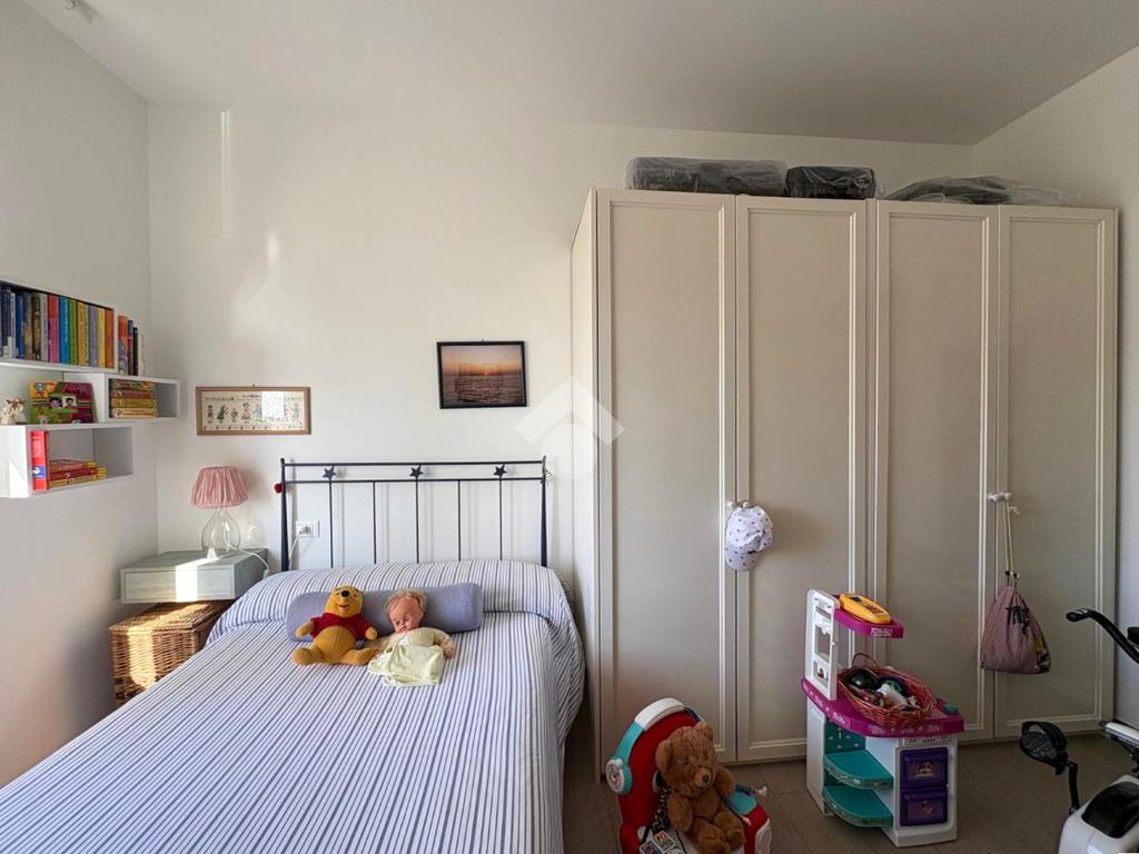 L’immobile è anche dotato di due balconi: uno a servizio della cucina con esposizione sud-ovest ed uno, più profondo, a servizio del soggiorno e delle due camere con esposizione nord.